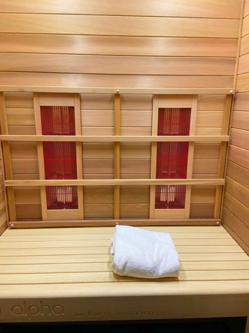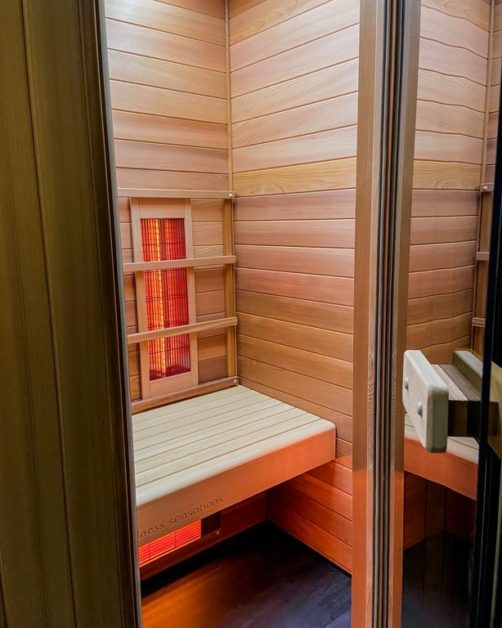 Le sauna, un sauna infra-rouge, est petit mais parfait pour deux personnes. Ce type de sauna a l’avantage de chauffer rapidement et a de nombreux bienfaits pour le corps, notamment celui de soulager les maux de dos. Suivi par le gommage et les sels de bain fourni dans le panier bien-être, vous ressortirez de la chambre avec une peau requinquée !