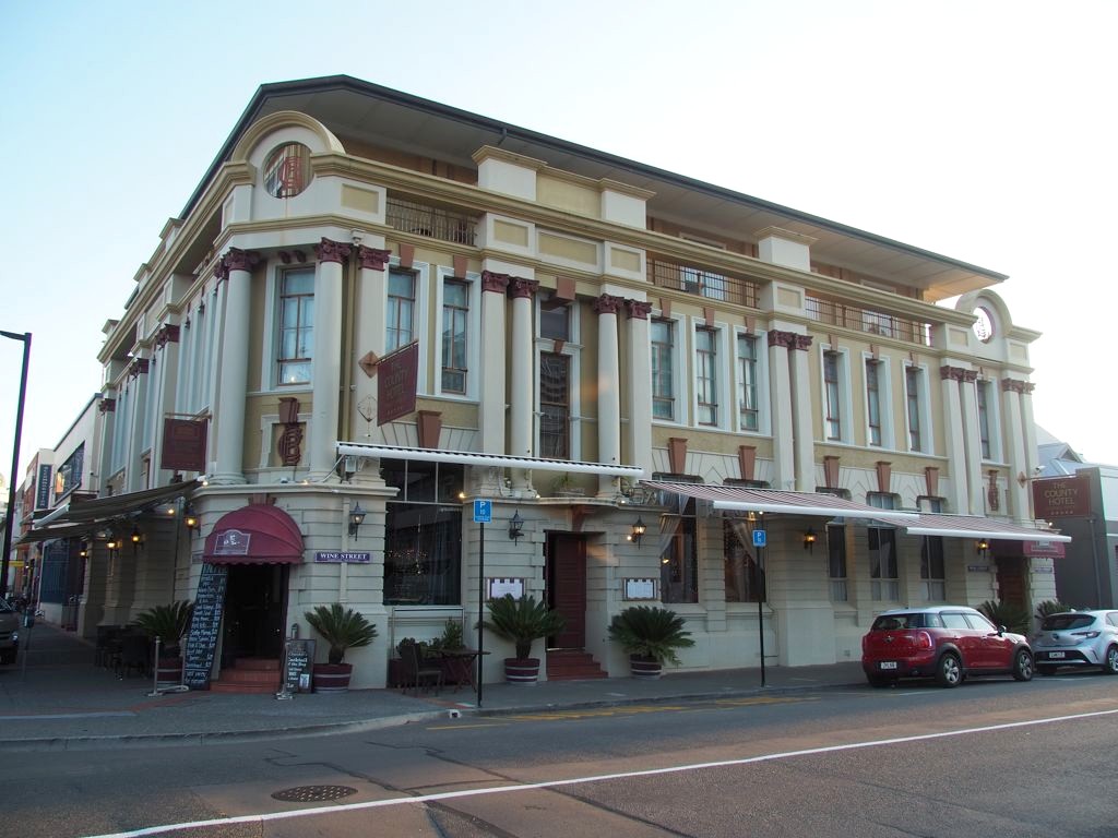 Napier possède plusieurs hôtels Art Déco et bien évidemment on a choisi de rester dans le thème jusqu’au bout ! Je dois dire que le choix fut assez difficile, mais j’ai finalement opté pour l’hôtel Art Déco qui me semblait proposer le meilleur rapport qualité-prix, The County Hotel, et je n’ai vraiment pas regretté mon choix.