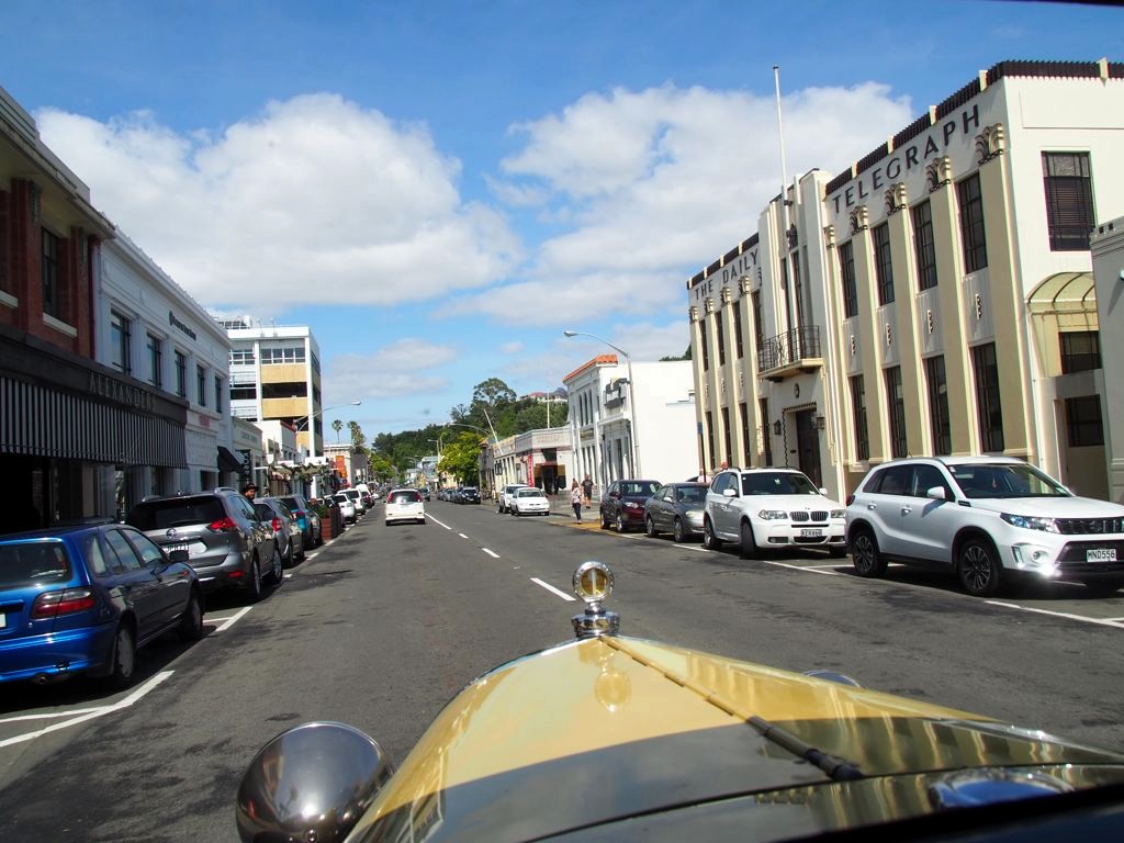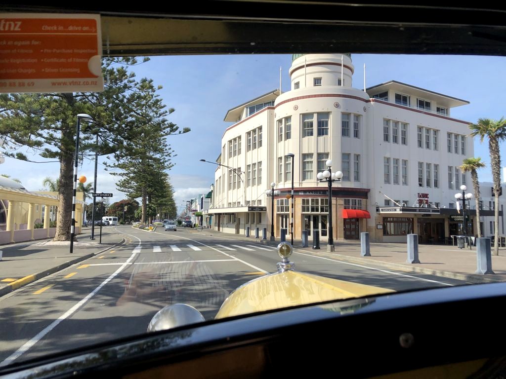 Notre guide (et chauffeur !) passionné nous a donné de nombreuses explications sur l’histoire du tremblement de terre et du style Art Deco de Napier. Se balader dans les artères centrales à l’arrière de cette voiture ancienne m’a vraiment transporté à une autre époque !