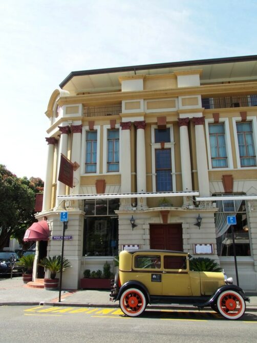 Nous avons craqué pour une visite privée en vieille voiture (voir plus bas), qui coûte assez chère mais qui était phénoménale. Mais pour les plus petits budgets, l’Art Deco Trust de Napier organise aussi des balades à pied quotidiennes pour explorer le centre Art Déco de Napier et qui vous permettra de découvrir l’intérieur de certains bâtiments (c’est la seule manière de pénétrer dans certains bâtiments). Autre option encore : une balade à vélo qui combine Art Déco et vignobles.