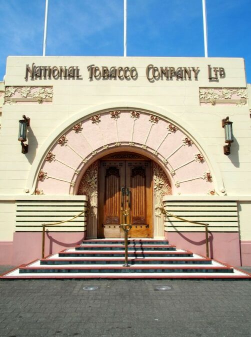 J’ai passé des heures à flâner dans les rues de Napier, à profiter de cet Art Déco néo-zélandais aux tons pastels. Mon bâtiment préféré à Napier : celui de la National Tobacco Company… Un peu excentré mais il mérite clairement un petit arrêt en voiture !