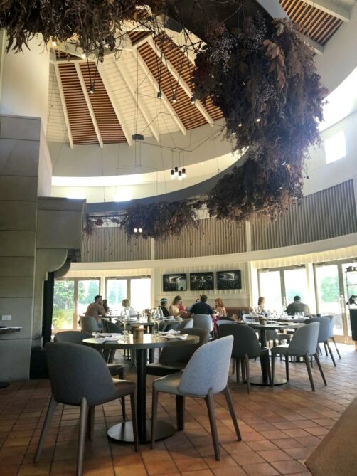 Comme nous avions seulement le temps de visiter un seul vignoble, j’ai choisi celui qui combinait qualité + bon resto + proximité avec le Te Mata Peak que nous voulions aussi visiter (voir plus bas). C’est donc comme ça que nous avons atterri à la Craggy Range Winery, où nous avons mangé l’un des meilleurs repas de notre voyage en Nouvelle-Zélande, combiné bien sur avec d’excellents vins !