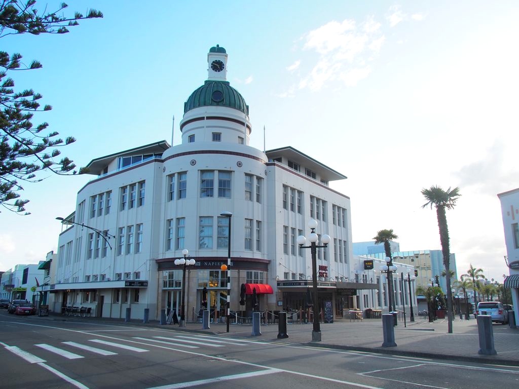 Napier est connue pour son centre purement Art Déco, qui fait aujourd’hui la renommée internationale de la ville et lui a même valu d’être classée au Patrimoine mondial de l’UNESCO. Le nombre de bâtiments Art Déco à Napier est vraiment impressionnant.