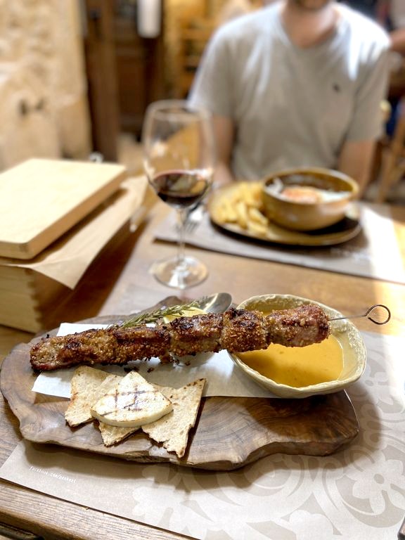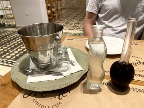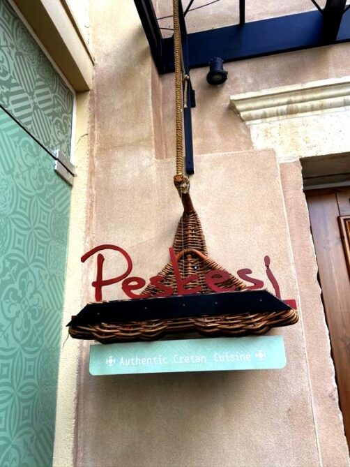 Le restaurant Peskesi est limite plus parlant que la visite du site de Knossos pour découvrir la culture minoenne, puisqu’on peut y déguster (notamment) plusieurs recettes minoennes basées sur ce qui a été découvert sur le site de Knossos ! Au menu par exemple, une salade minoenne aux pois chiches, blé et huile d’olive, qui permet de se rendre compte du type de plats et d’aliments que pouvaient manger nos ancêtres il y a plus de 3 millénaires. Leur souvlaki à la minoenne était également excellent.