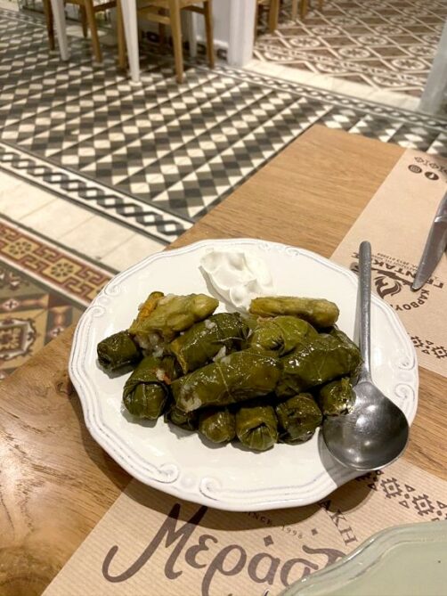 Merastri est une autre sublime adresse d’Héraklion. Ce restaurant slow food propose des plats préparés à base de produits ultra locaux et en partie de leurs propres productions : ils produisent même leur propre vin (qui est plutôt pas mal du tout). Les portions sont, à nouveau, très généreuses. Délicieuses feuilles de vigne (récoltées dans leurs vignes). Laissez-vous guider pour découvrir les spécialités de la région d’Héraklion.