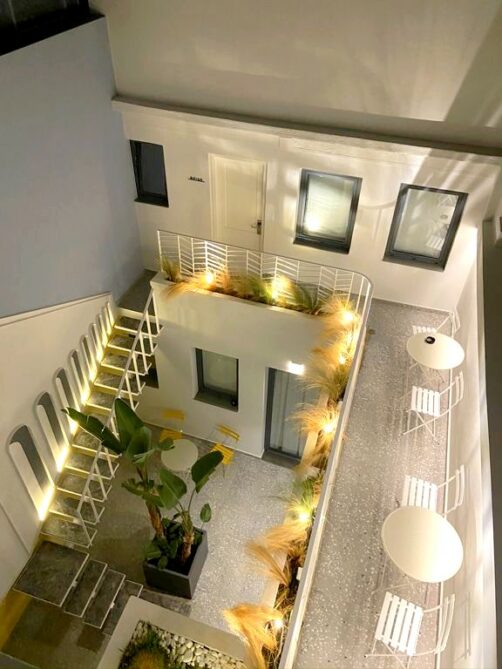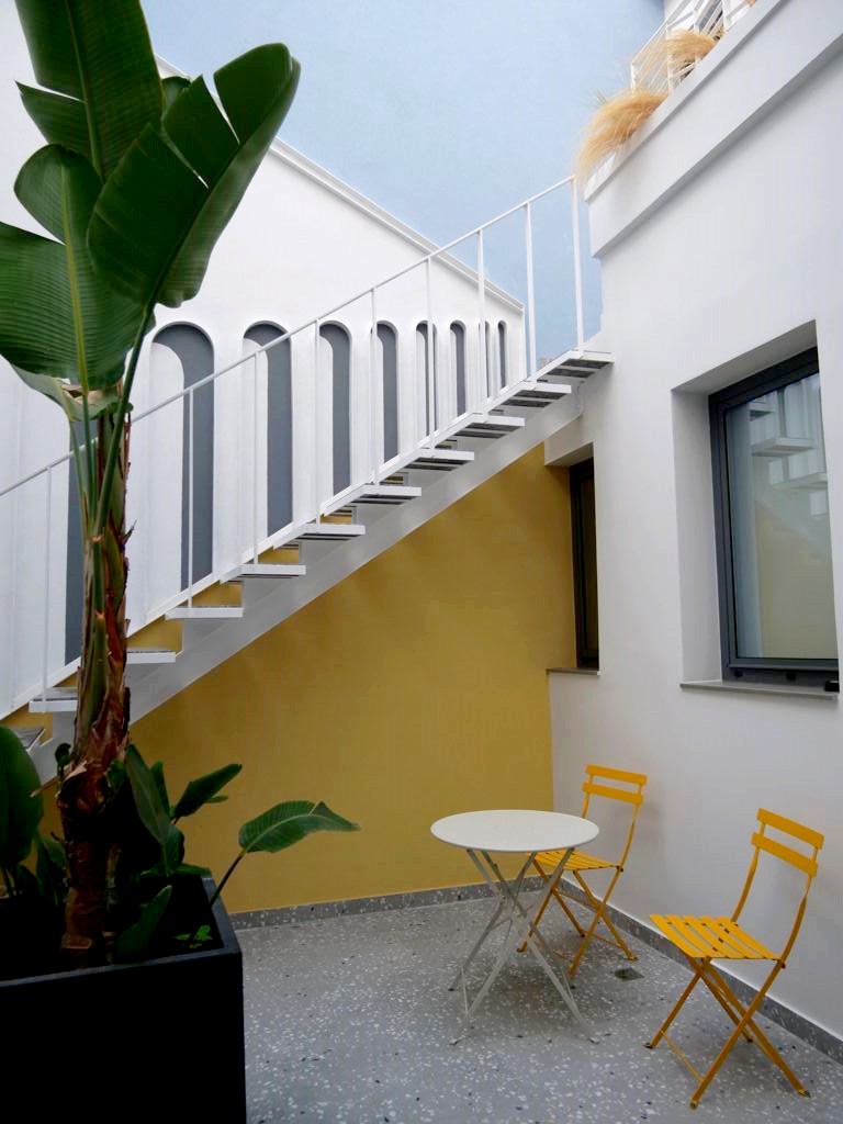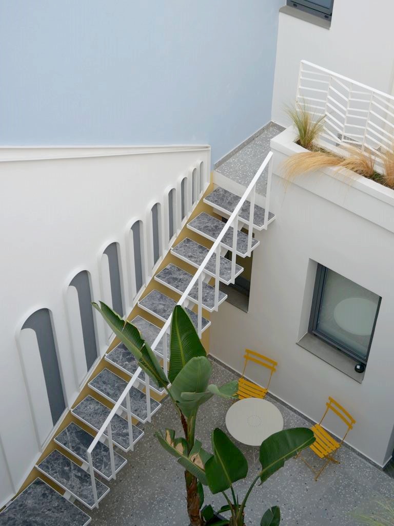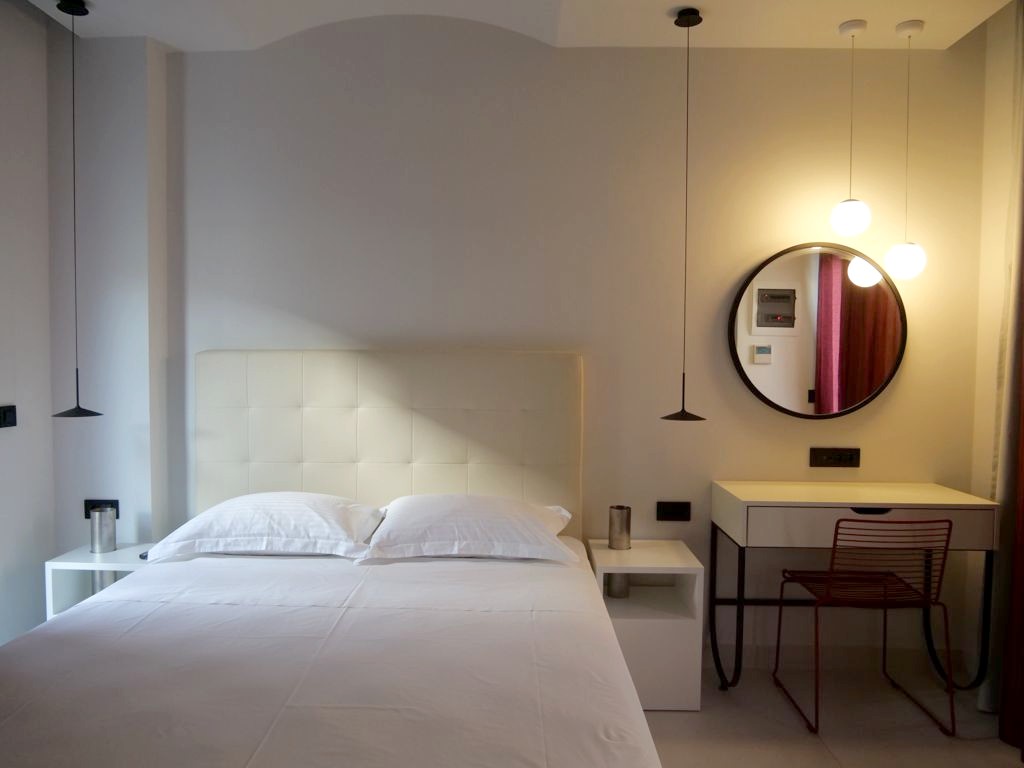 Après avoir longuement hésité avec le Aquila Atlantis Hotel, un hôtel 5 étoiles avec piscine extérieure et vue sur le port d’Héraklion, je me suis laissée tentée par le design d’un hôtel qui venait à peine d’ouvrir, le Domus Ariadne, et nous ne l’avons pas regretté.