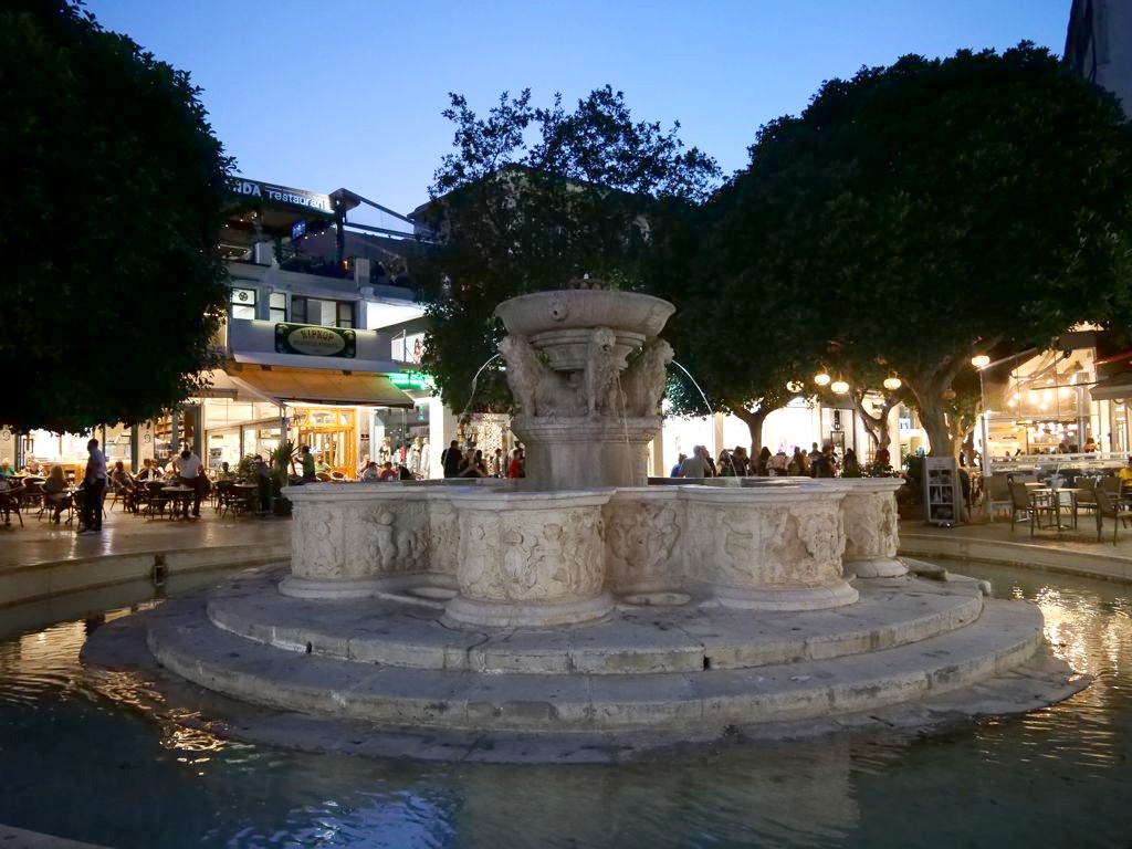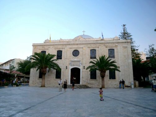 En remontant la rue en partant du vieux port, vous découvrirez plein de magasins, cafés et restaurants. Arrêtez-vous aussi à l’église byzantine Agios Titos, à l’hôtel de ville qui occupe une splendide loggia vénitienne, et à la célèbre Place des Lions, au centre de laquelle trône la Fontaine aux lions, datant également de l’époque vénitienne.