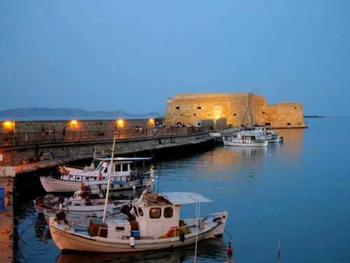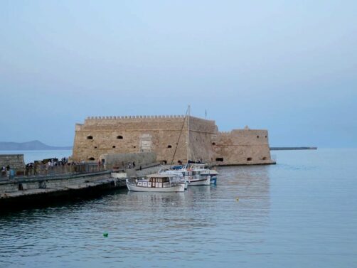 Une balade au Vieux Port d’Héraklion au coucher du soleil parmi les locaux est aussi une des activités immanquables à Héraklion. Vous pourrez y admirer la forteresse vénitienne d’Héraklion, aussi appelée Forteresse de Koules, datant du 13ème siècle (elle se visite aussi mais attention ça ferme assez tôt).