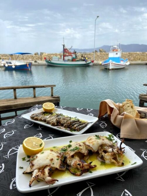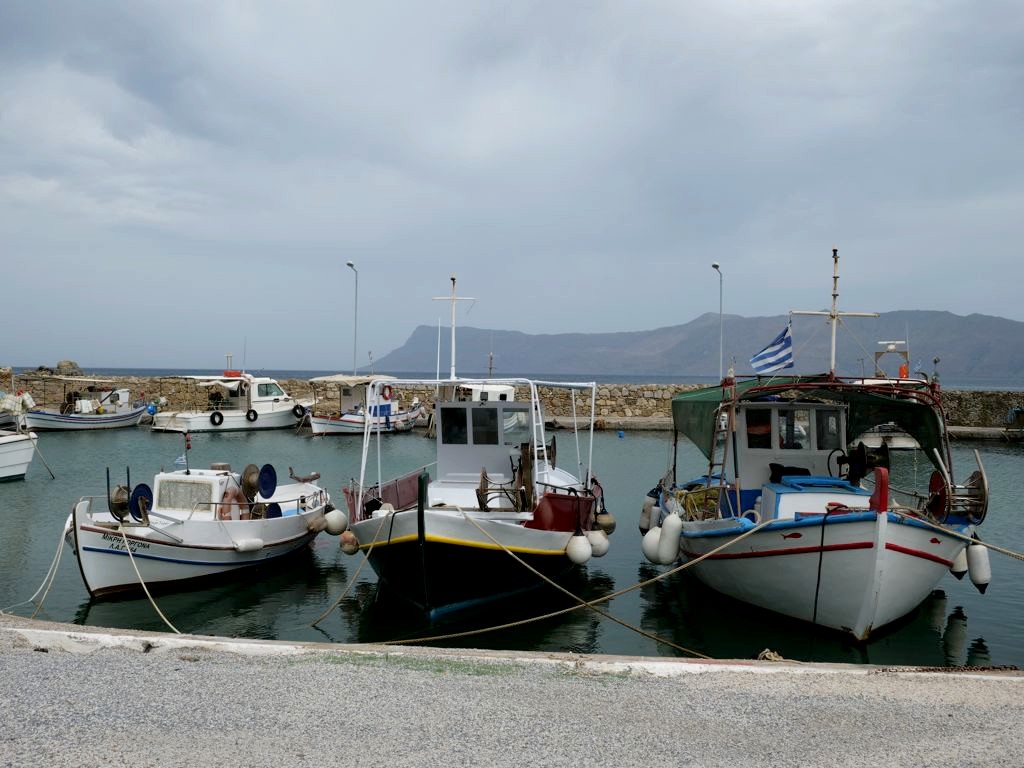 Le vieux port de pêche de Kissamos possède quelques petits restaurants spécialisés, évidemment, dans les préparations à base de poissons. Nous étions à la base partis pour manger au Theaseas (assez récent) mais trouvant celui-ci fermé, nous nous sommes rabattus sur la Tsengas Fish Tavern. Préparations bonnes sans être exceptionnelles, mais avec cette vue-là ce fut un très bon moment !