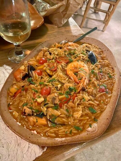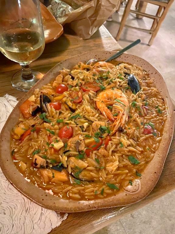 On y a tellement bien mangé qu’on y est retourné une deuxième fois ! Je vous recommande en particulier les fleurs d’aubergine et feuilles de vignes farcies, la moussaka et le riz aux fruits de mer. Attention, tout est ultra copieux (même les entrées), il vaut mieux choisir quelques plats à partager seulement.