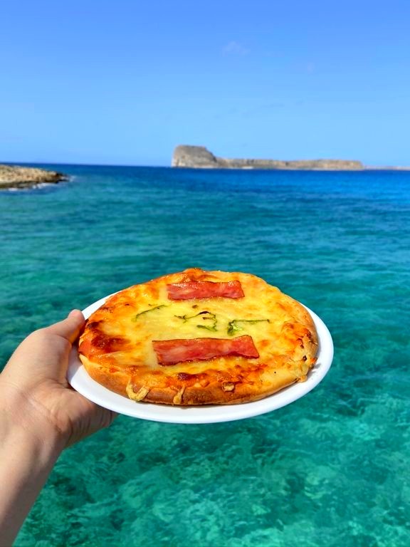 Pour manger à Balos Beach, il n’y a pas 2000 solutions : il existe un seul et unique petit snack sur la plage, avec peu de choix. Nous avons donc choisi, comme beaucoup, de manger au resto de notre bateau juste avant de repartir (ça évite d’être en retard et on peut tout de même manger avec la vue sur la baie !). Ne vous attendez pas à de la grande gastronomie, mais j’ai trouvé les prix plus que corrects étant donné la popularité de l’excursion.
