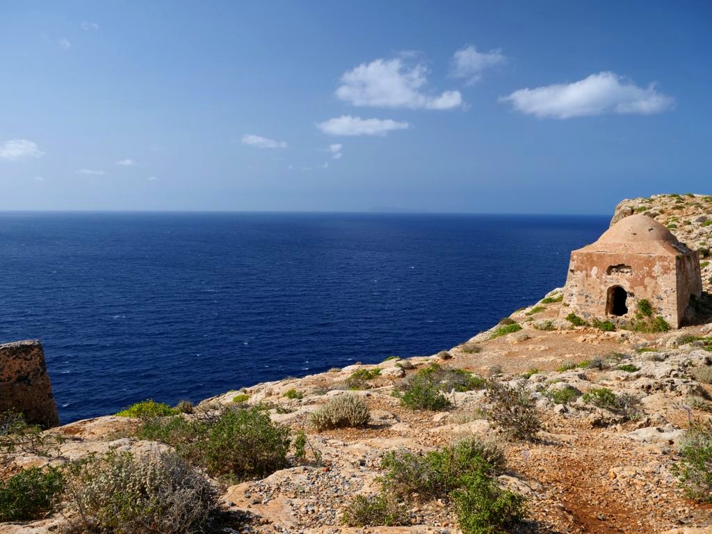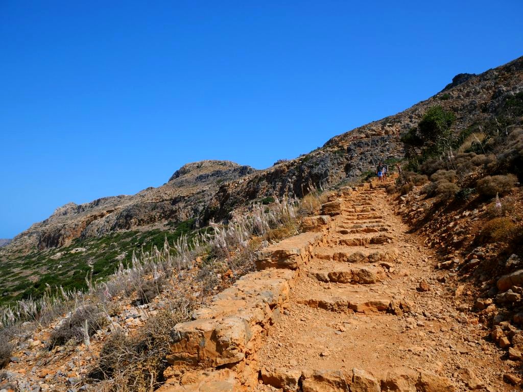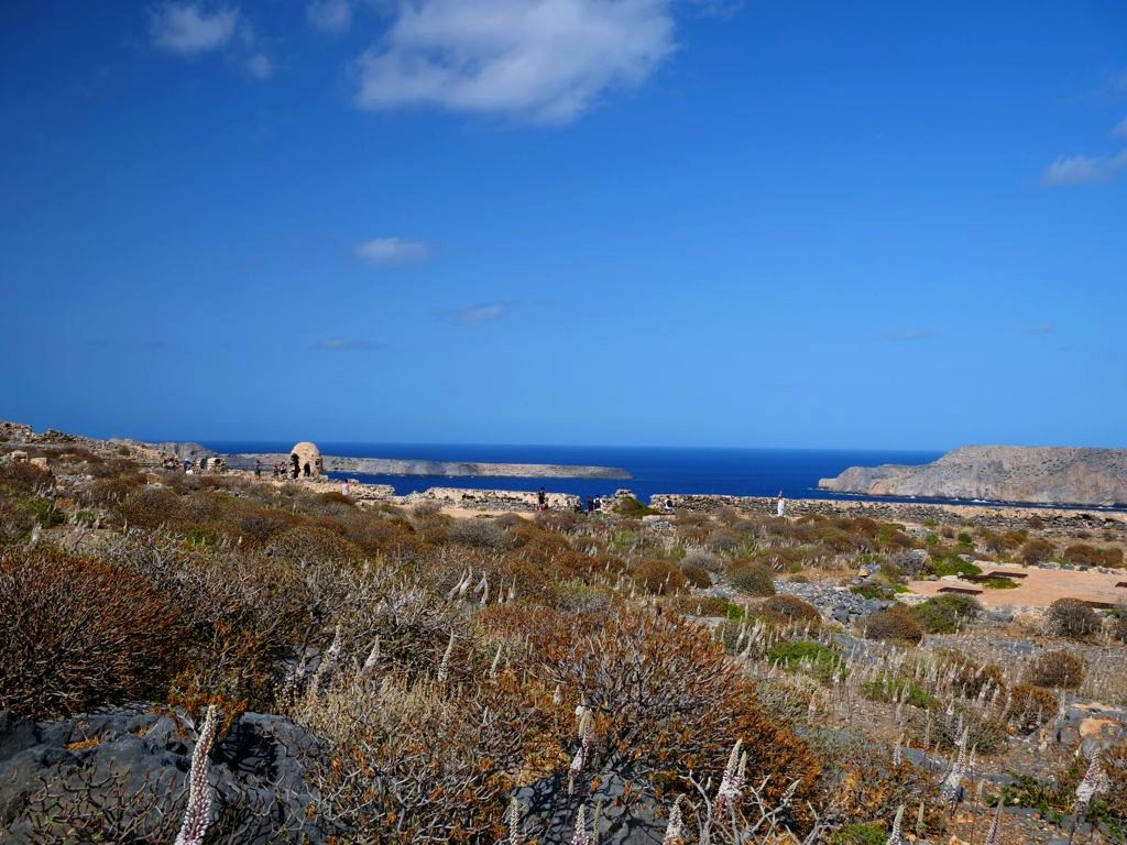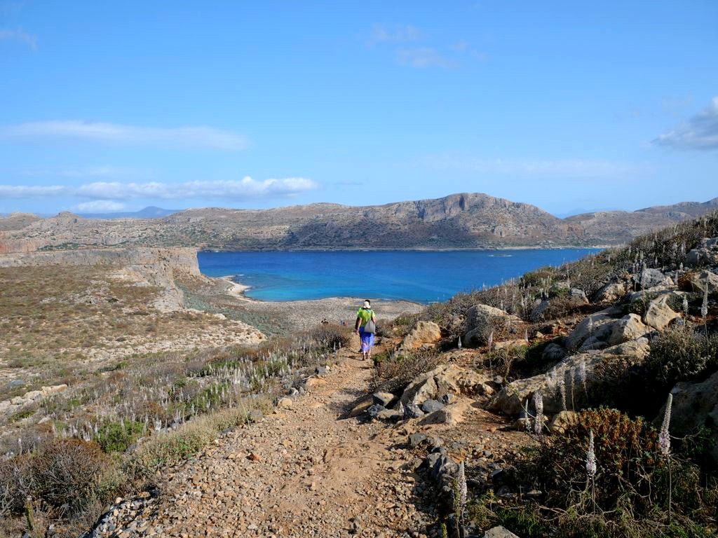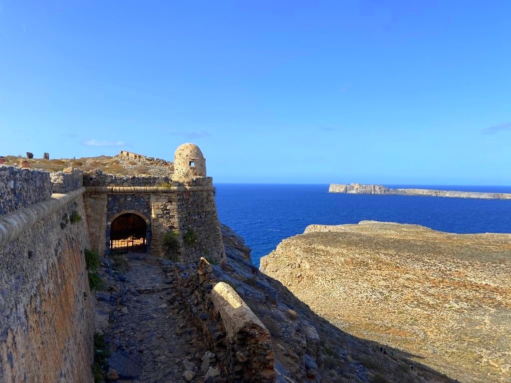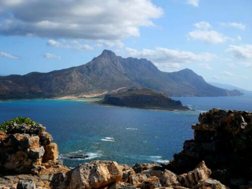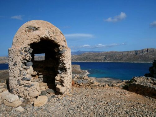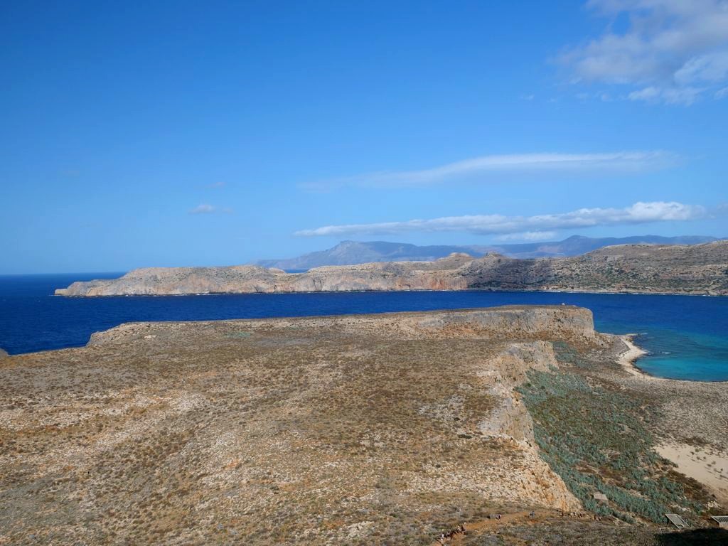 Vous avez le choix de rester à la plage, qui se trouve juste à côté de l’endroit où amarre le bateau est est beaucoup plus calme que celle de Balos, ou de monter au sommet de l’île pour découvrir les ruines de l’ancienne forteresse vénitienne, datant du 16ème siècle, et par la suite occupée par les Ottomans. Evidemment, c’est l’option que nous avons choisie, et les vues panoramiques sur la péninsule, l’île et la baie de Balos en valaient totalement la peine !