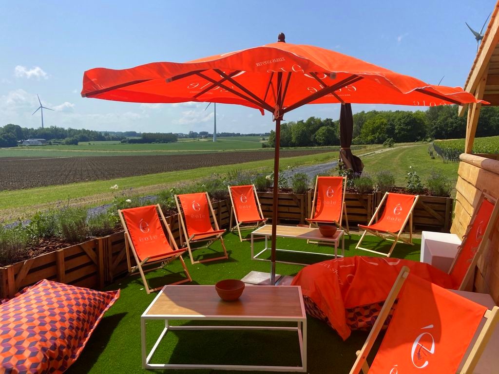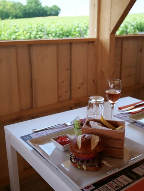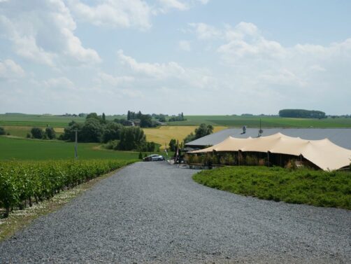 Nous nous sommes d’abord arrêtés au Domaine du Chant d’Eole, qui propose cet été un pop-up restaurant situé en plein milieu de leurs vignes. Le cadre est splendide et en plus, on y mange très bien ! C’est l’occasion parfaite pour déguster leur méthode traditionnelle qui a carrément reçu le prix de Meilleure Bulle du Monde en 2019 et n’a rien à envier aux plus célèbres champagnes français, ou pour découvrir le « Belgian Spritz », en accompagnement de petits plats réalisés pour certains à base de leurs vins.