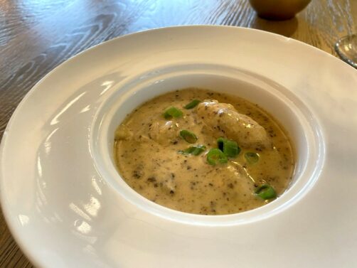 Puisque le Château de Ramegnies-Chin ne possède pas de restaurant, j’ai suivi leurs conseils et j’ai été mangé chez Ming Dynasty. Et les bonnes surprises continuèrent puisqu’il s’agit probablement du meilleur restaurant chinois où j’ai mangé en Wallonie ! Pour quelques euros seulement par rapport à des restaurants chinois « classiques », on y déguste une cuisine chinoise authentique et raffinée dans un cadre tout juste rénové. Coup de coeur pour les raviolis de langoustines et beurre wasabi à la truffe, l’entrée à ne pas manquer ici.