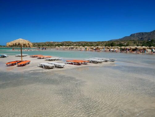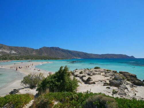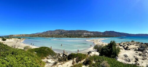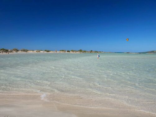 Comme Balos, Elafonissi est assez populaire mais une fois que l’on s’éloigne des transats payants et qu’on traverse l’eau (qui arrive à la taille pour accéder à l’île qui se trouve dans le prolongement de la plage), on est beaucoup plus tranquille et la couleur de l’eau est encore plus incroyable !