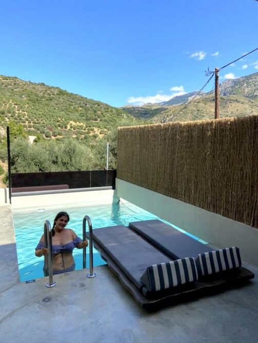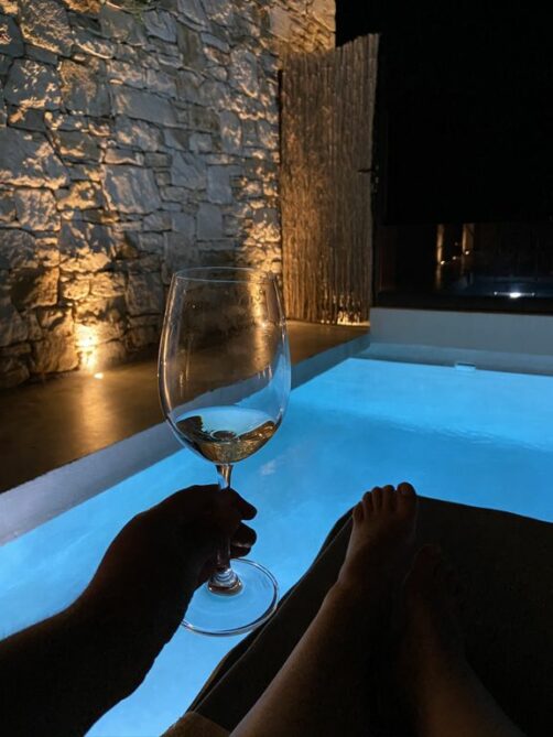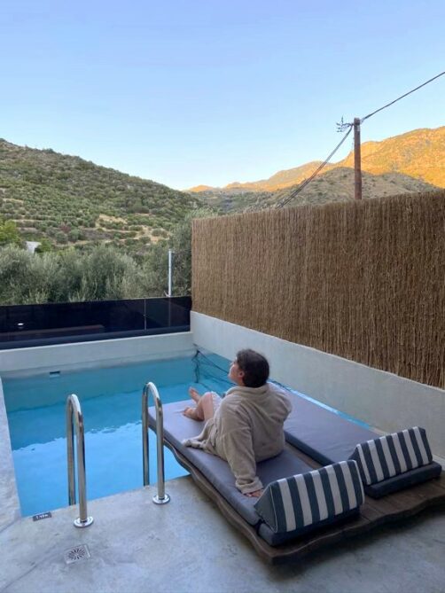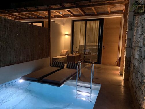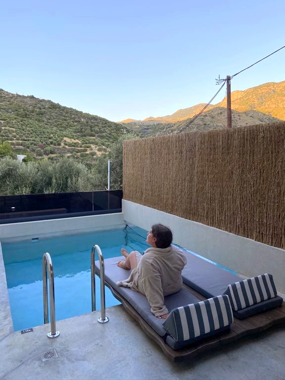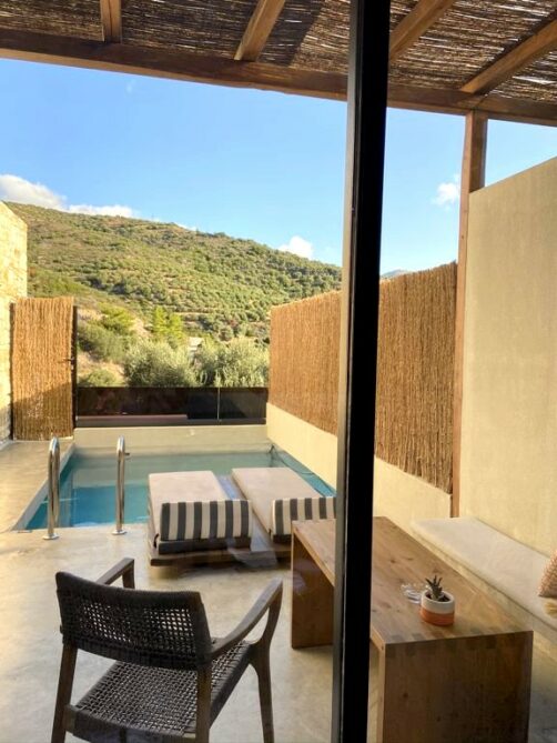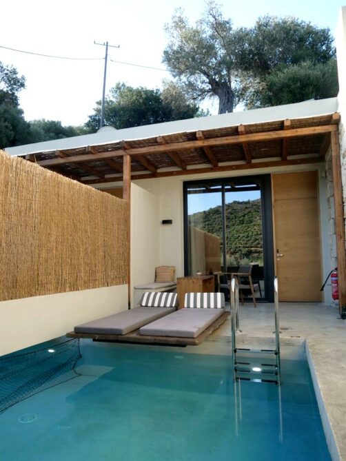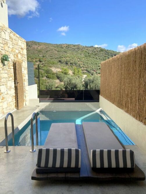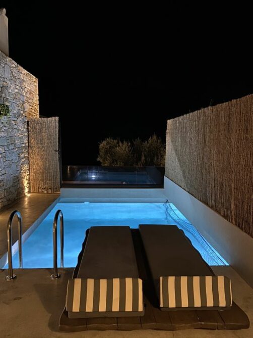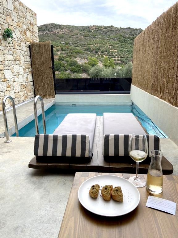 Début octobre, une de ces chambres avec piscine privée (l’hôtel n’a qu’une seule chambre sans piscine) nous est revenue à seulement 90€ la nuit… vive les « prix Covid ». Certes, la Grèce est peu chère mais les prix flambent pour les hôtels avec piscine ou jacuzzi privé, très à la mode en ce moment.