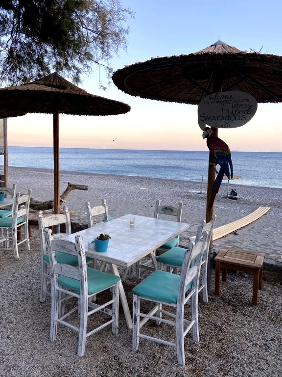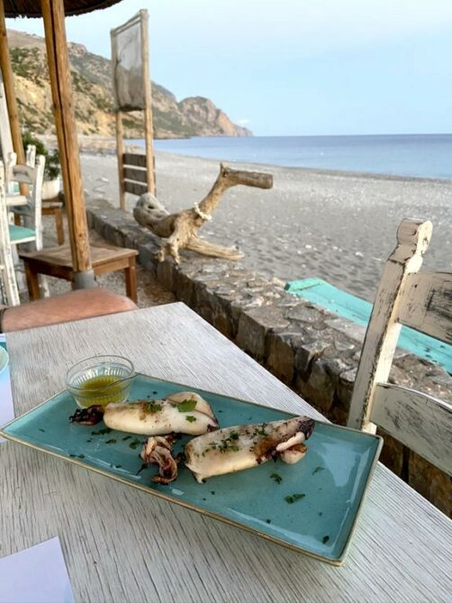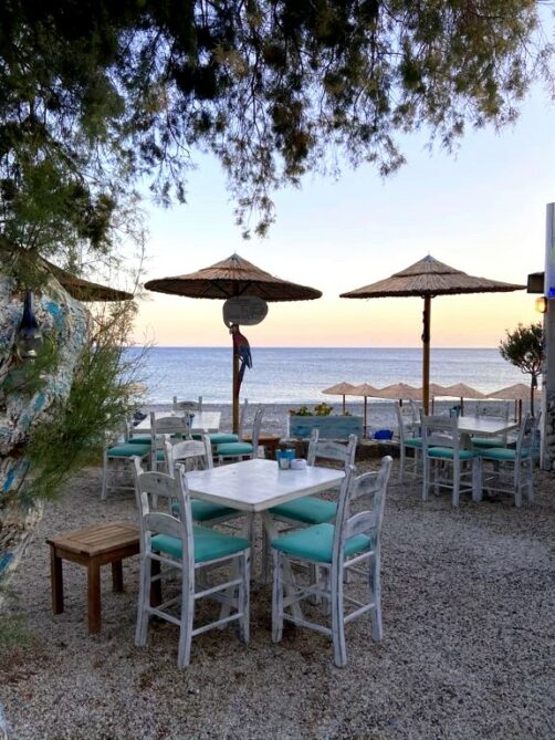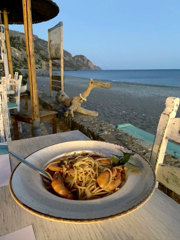 Sougia n’est pas trop touristique, on y trouve plutôt les « touristes alternatifs » dirons-nous, et il y a beaucoup de restaurants très sympas le long de la plage et dans les petites rues du village.
