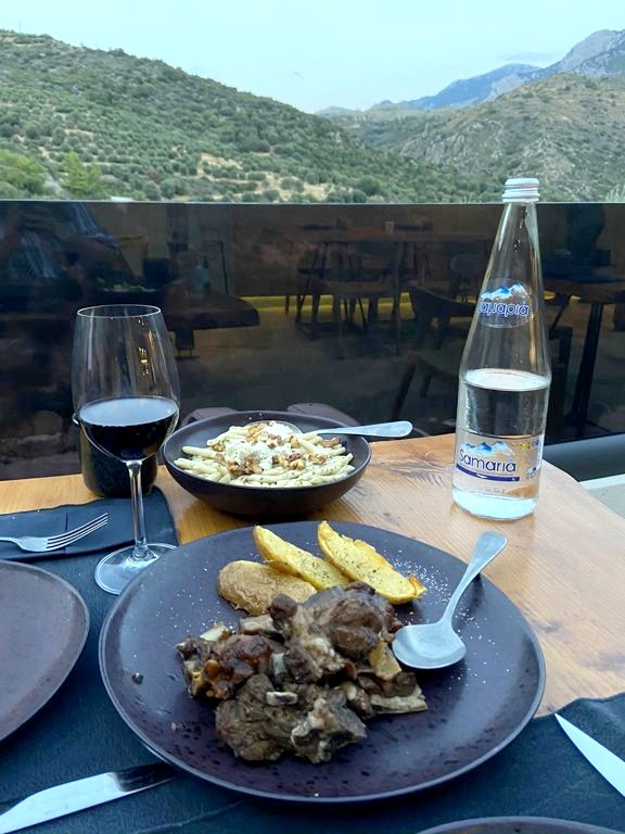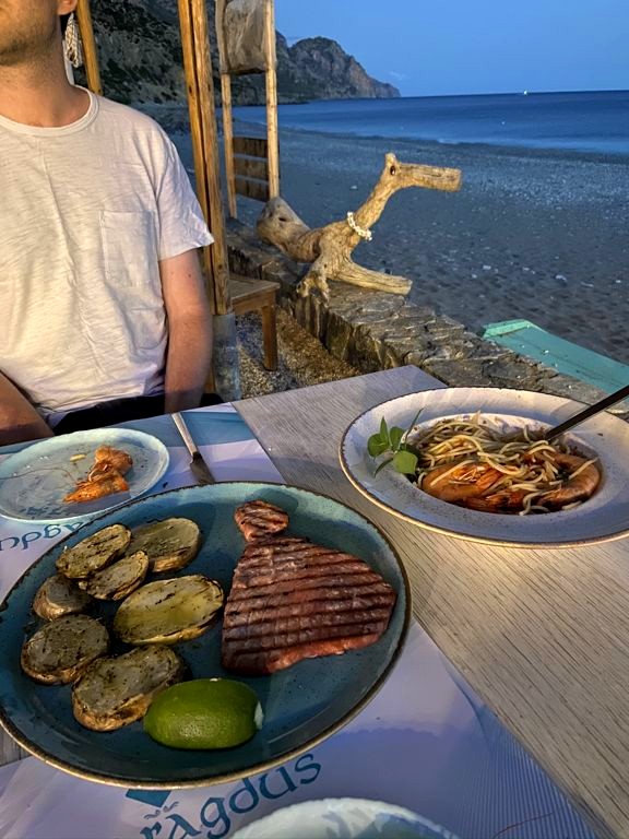 Si lors de notre séjour, l’hôtel n’avait pas encore recommencé à servir des petits-déjeuners pour cause de pandémie, nous avons eu la chance de pouvoir manger un soir au restaurant de l’hôtel, qui a rouvert pile à temps pour notre dernier soir sur place, et qui fut l’un des meilleurs endroits où nous avons mangé en Crète, et sans aucun doute le meilleur restaurant où nous avons mangé sur la côte sud !
