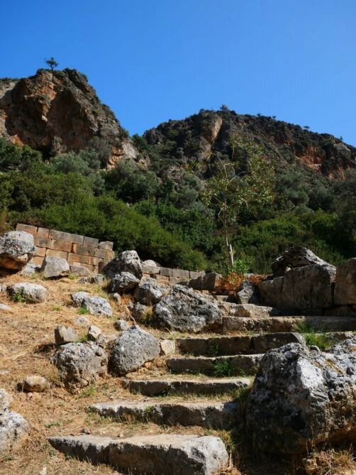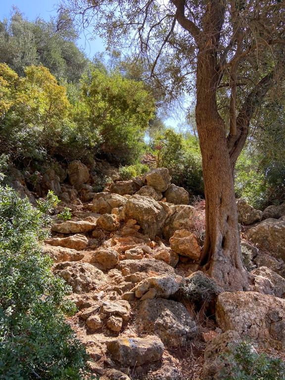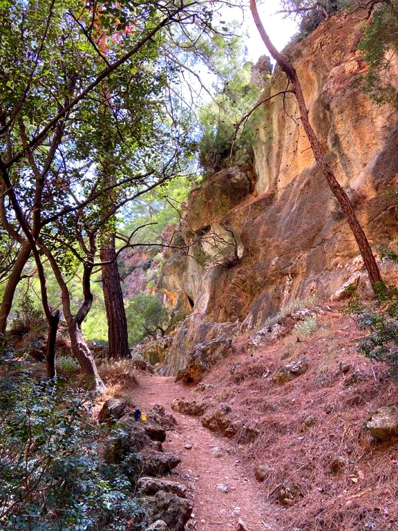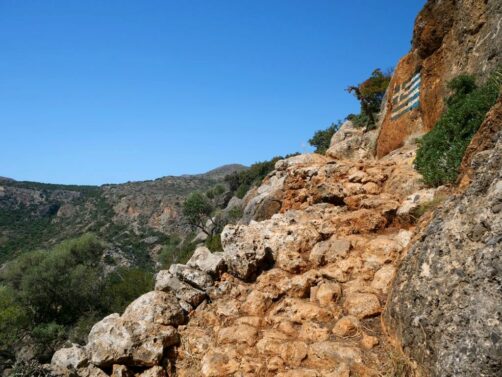 C’est au niveau des mosaïques que le sentier de 6km permettant de rentrer à pied à Sougia commence. Assurez-vous d’être bien chaussés, j’insiste (je n’avais pas pris de chaussures de marche et j’ai du jeter mes chaussures à l’arrivée tant elles avaient morflé sur le chemin, donc oui ça ne rigole pas !).