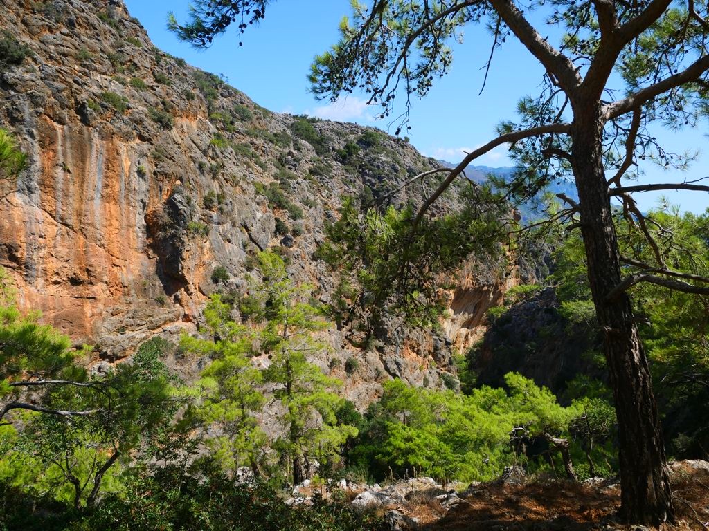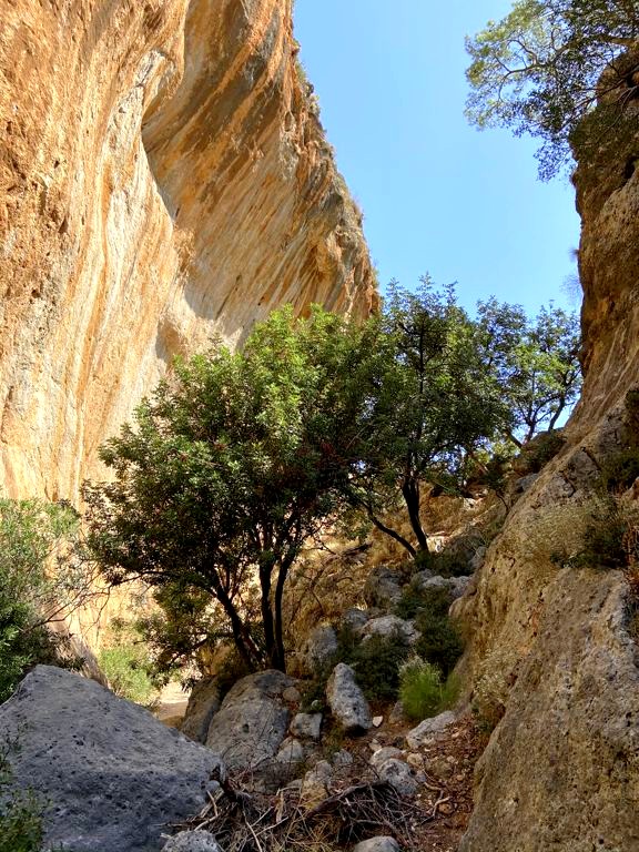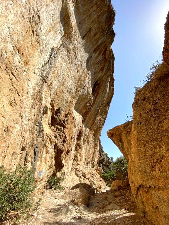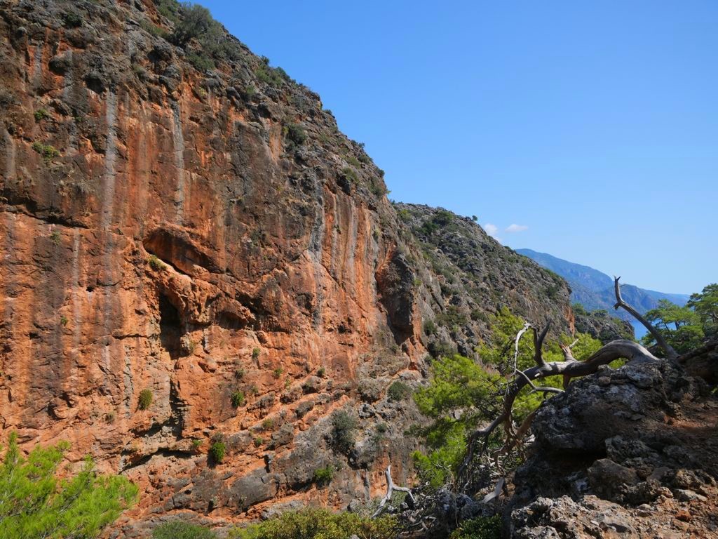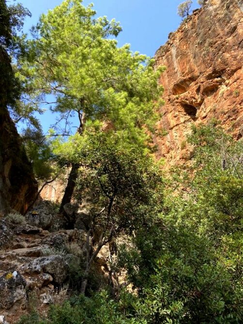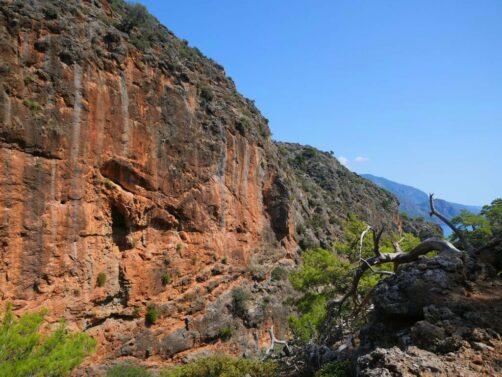 La redescente via les Gorges de Lissos permet de bénéficier d’un peu d’ombre sur la fin du trajet et de découvrir des paysages totalement différents, entourés par ces grandes falaises, avant de rejoindre enfin le petit port de Sougia.