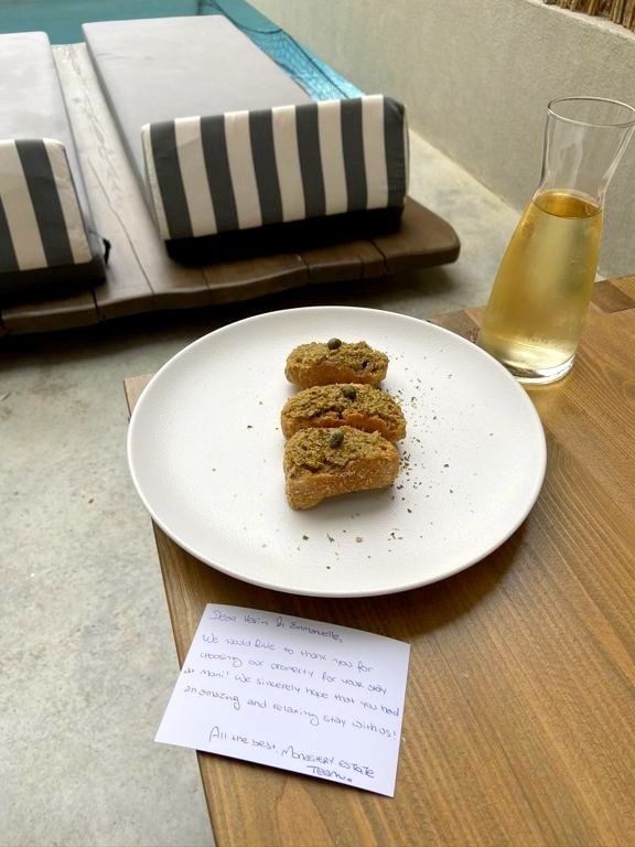L’hospitalité grecque est un concept bien maitrisé ici, puisqu’on se sent comme à la maison dès la réservation et que les petites attentions agrémentent le séjour, des gourmandises locales offertes à l’arrivée, à l’apéro à base de vin grec offert pour notre dernière nuit sur place, en passant par les conseils personnalisés du personnel pour découvrir la région. Un service vraiment parfait !