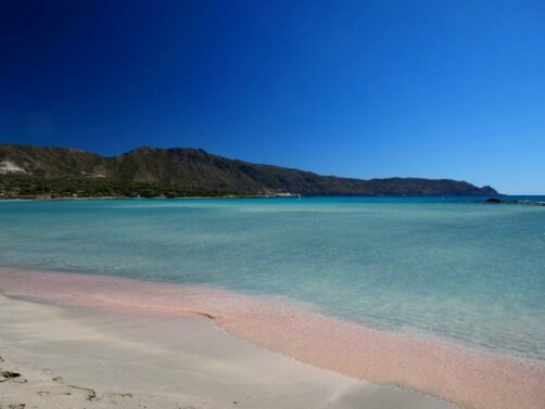 La plage rose de Elafonisi est l’une des plus connues de Crète et elle se trouve à environs 90 minutes de route (sinueuse) depuis Sougia – une distance qui n’est pas si longue que ça pour le sud de la Crète où tout est assez éloigné ! On a décidé de visiter la plage sur notre chemin entre Balos et Sougia, mais ça peut également faire une excursion d’une journée facile.