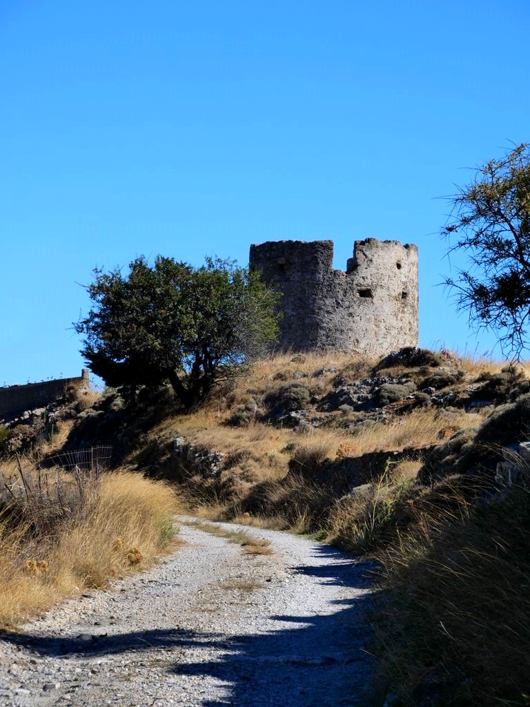 L’hôtel nous avait dit qu’il s’agissait d’une « promenade » facile, pour moi c’est quand même plutôt une randonnée de niveau moyen – pas pour la distance mais pour le dénivelé en pleine chaleur et ce crapahutage. Bref, la promenade s’est révélée un peu plus difficile que prévue, mais je dois dire que ça en valait la peine car les vues étaient splendides tout au long ! Ici aussi, j’étais presque seule sur les ruines, ce qui est toujours pour moi un moment assez incroyable.