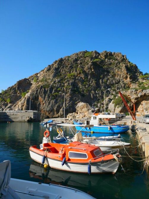 Le bateau taxi part à heure fixe du petit port de Sougia – renseignez-vous dans le village la veille pour confirmer l’horaire du moment et réserver votre place. On parle de quelques euros par personne, donc c’est vraiment très abordable.
