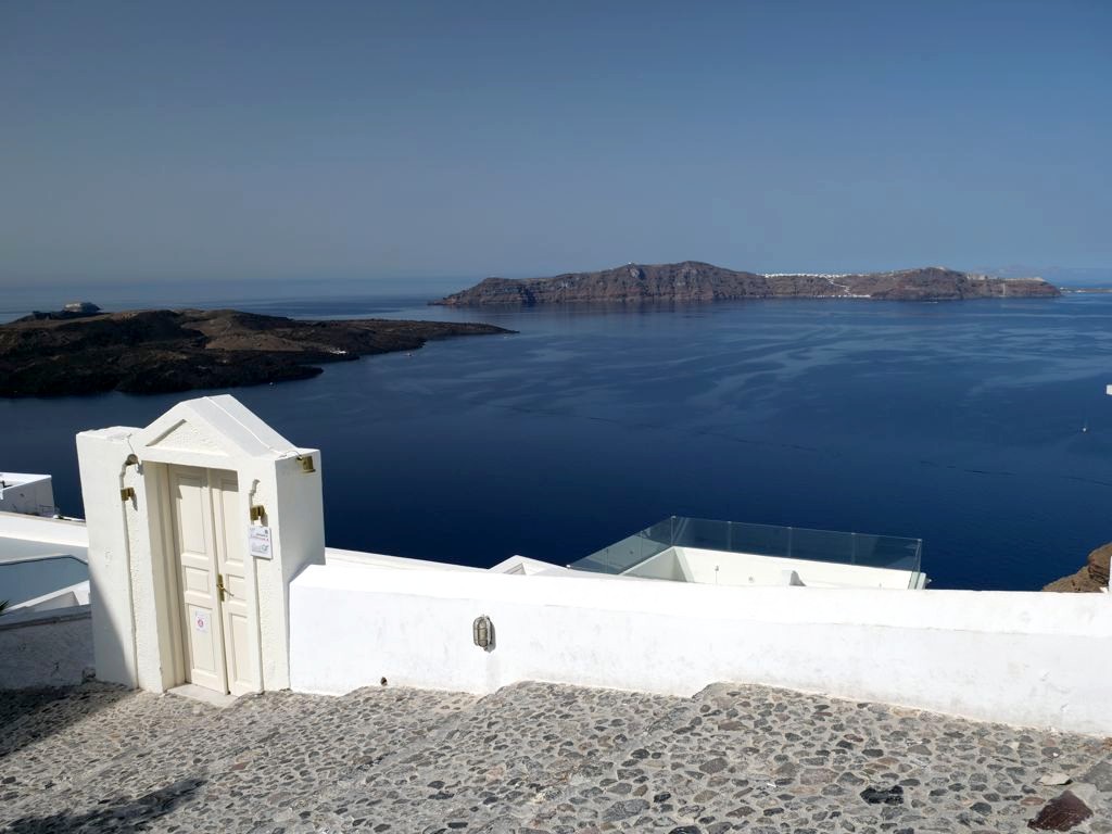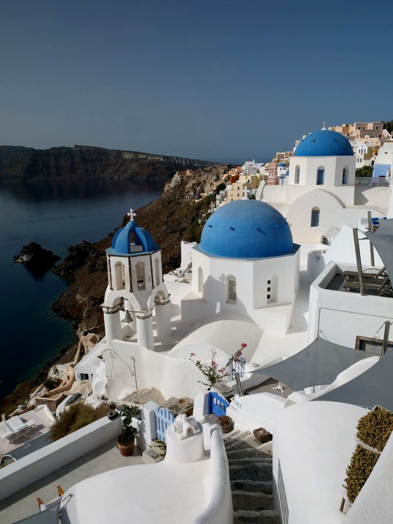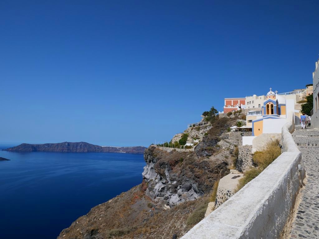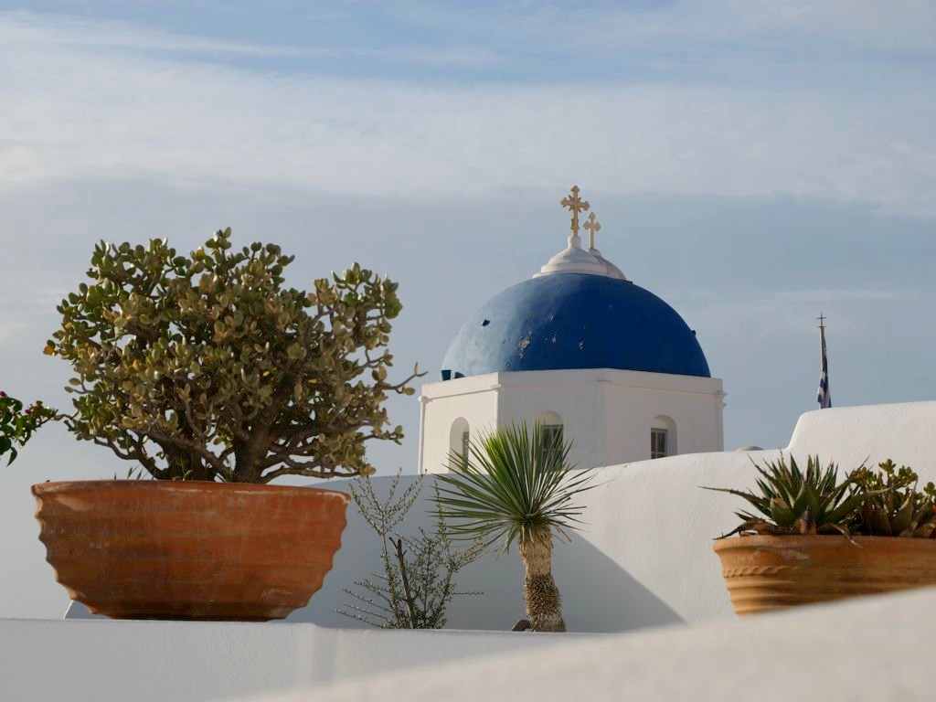 Mais pour moi, les plus belles vues d’Oia se trouvent du côté des Blue Domes, à côté desquels nous avions le bonheur de séjourner (chez Oia Spirit). Nous avons donc pu y accéder de tout près, mais attention : la plupart des photos que vous voyez sur Instagram sont faites d’endroits où il n’y a normalement pas d’accès, que ce soit les toits des églises (un peu de respect…) ou des allées barrées par des cordons ou barrières ouvertes par les touristes je-m’en-foutistes.