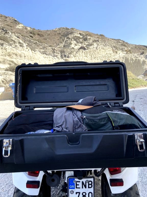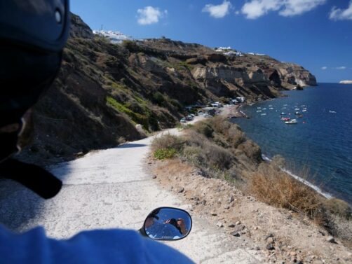 Attention également à bien mettre votre casque, et à faire attention quand vous montez ou descendez des terrains assez escarpés, car les accidents ne sont pas rares à Santorin.