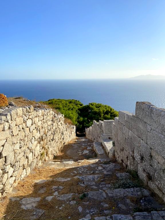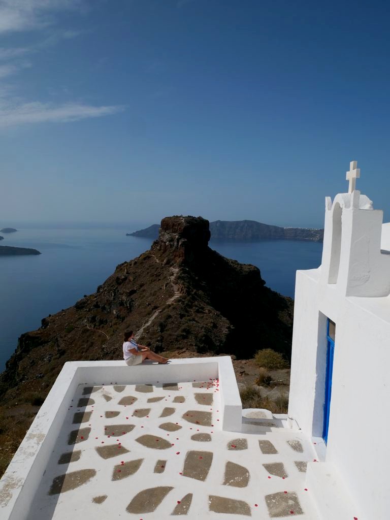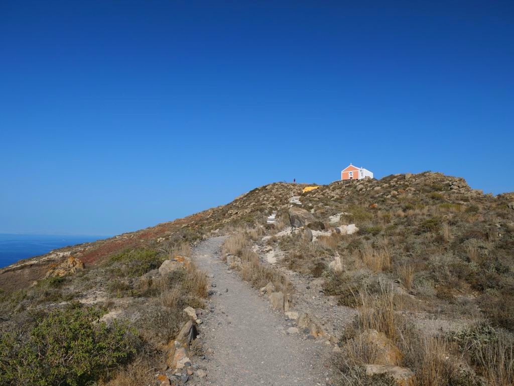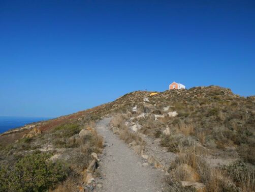 Une fois arrivées aux ruines, vous pouvez continuer la descente jusqu’à une jolie église cachée. La montée jusqu’au sommet de Skaros Rock est par contre réservée aux plus téméraires car il y a une petite partie d’escalade. Ca monte et ça descend bien et il n’y a pas d’ombre, donc une fois de plus privilégier le matin pour faire cette randonnée.