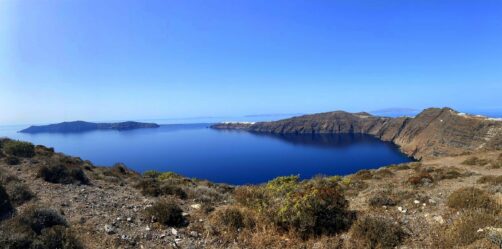 Vous le savez sans doute, ce qui rend Santorin unique, ce sont ses paysages volcaniques. La caldeira (cratère) a été créée par une ancienne éruption volcanique (certains y voient d’ailleurs une explication au fameux mythe de l’Atlantide) et des petits villages aux maisons bleues et blanches sont venus se percher au sommet des falaises de l’un des bords du cratère. Au centre du cratère, un volcan sous-marin est d’ailleurs toujours actif.