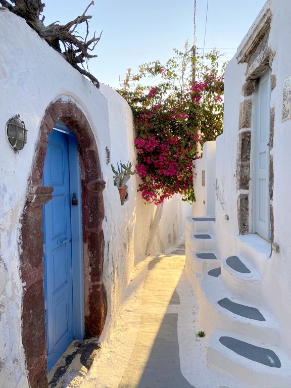 Emporio a été l’un de mes coups de cœur à Santorin. On y a logé dans un charmant hébergement, et ce petit village encore très peu connu m’a totalement séduit ! On y trouve des petites églises et les ruines d’un ancien château vénitien. A visiter à la golden hour pour une lumière incroyable dans ses ruelles… Juste en face du village, il y a plusieurs moulins à vent typiques auxquels on peut accéder pour de jolies photos.