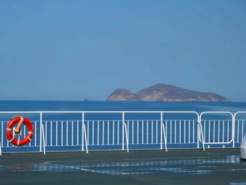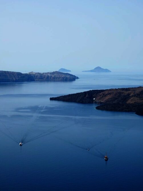 L’autre avantage d’arriver à Santorin par la mer, c’est évidemment la vue ! Comment ne pas tomber sous le charme quand on commence à apercevoir la caldeira ? Je garde un souvenir mémorable de ce trajet en ferry.