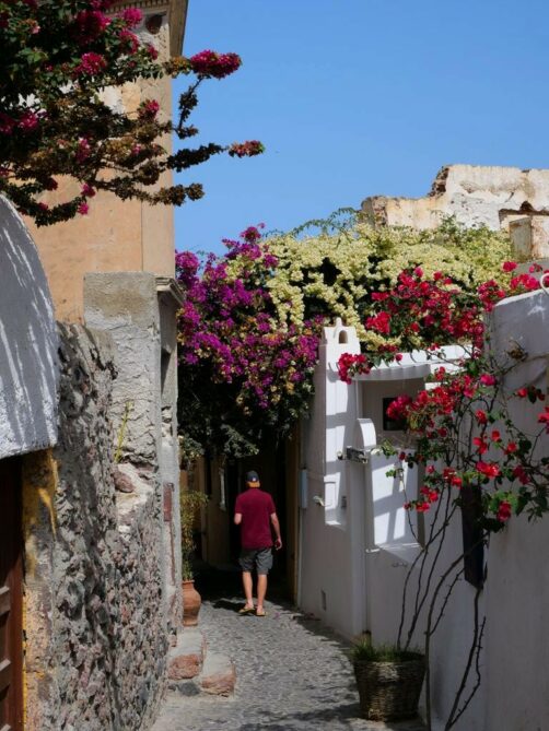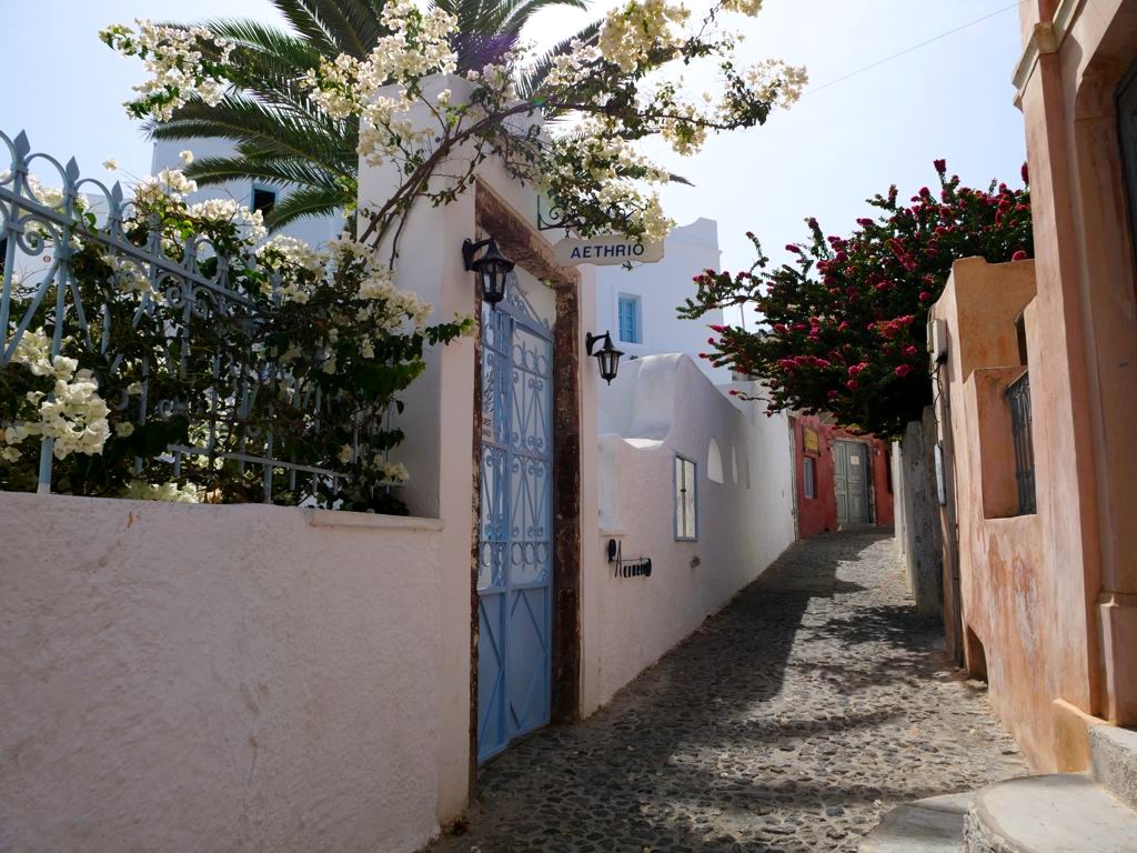 Et même à Oia, dès que l’on s’éloigne un peu des rues qui bordent la caldeira, on se retrouve dans des endroits bien plus calmes et tout aussi charmants !