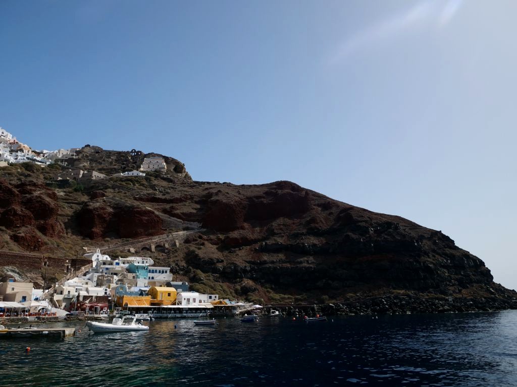 Je vous recommande aussi de descendre – à pied ou de préférence en quad – jusqu’au petit port d’Ammoudi, pour avoir une autre vue sur Oia et pour manger dans l’un des restaurants de poissons du port.