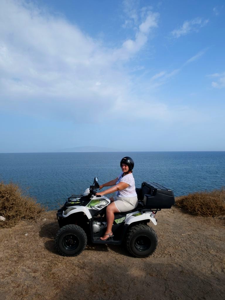 Au final, on a trouvé que le moyen le plus pratique de se déplacer à Santorin était le quad. Ce mode de transport très populaire ici auprès des touristes permet d’emprunter les petites routes de l’île facilement et de se garer à peu près partout (à l’inverse d’une voiture qui peut vite être encombrante et peu pratique à Santorin…).