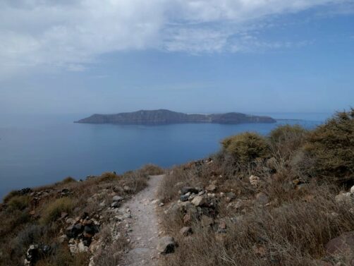 Attention aux chaleurs : il n’y a quasiment pas d’ombre sur ce trajet, on vous recommande donc de ne pas faire comme nous et de le faire tôt le matin ! Heureusement, il y a quand même plusieurs endroits sur le chemin où s’arrêter pour boire un petit café grec corsé et reprendre des forces…