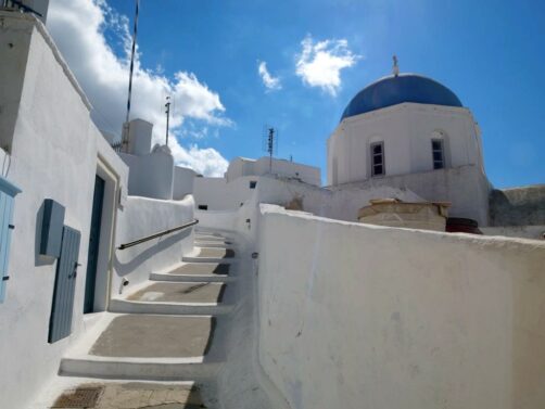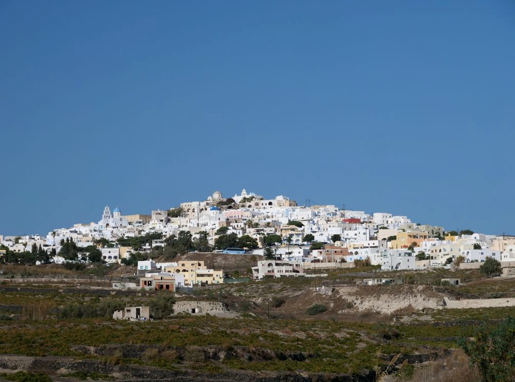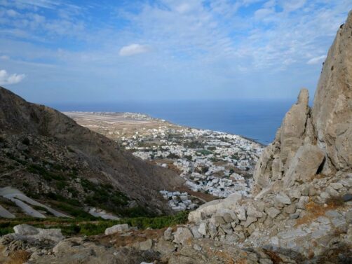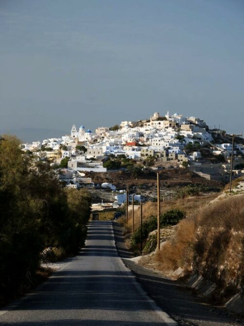 Le plus connu et le plus visité est Pyrgos. Si on suit sa petite rue commerçante jusqu’au bout, on arrive à des ruines d’où on peut avoir des vues panoramiques sur l’île. Il y a aussi plusieurs petits restos et bars très sympas.