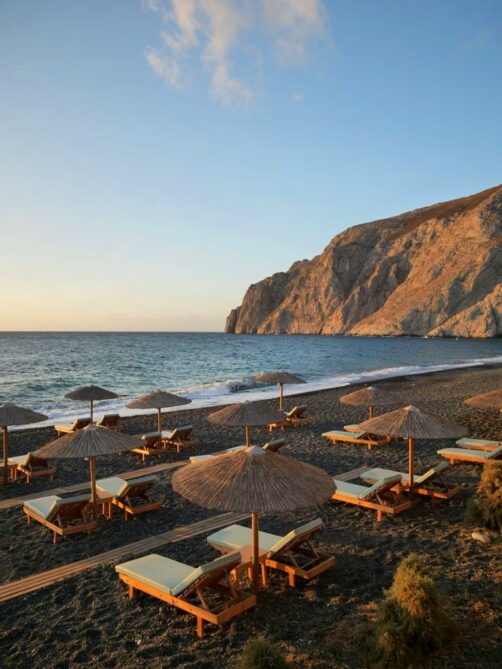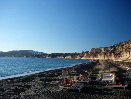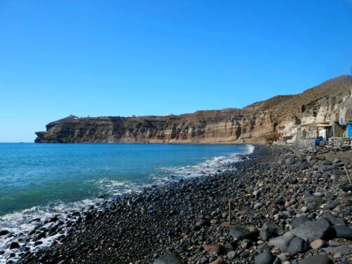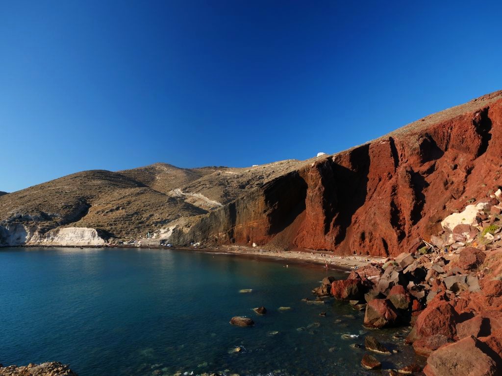 Près du site archéologique d’Akrotiri, la Red Beach est, comme son nom l’indique, une plage de sable « rouge ». Son accès se fait en crapahutant un peu depuis la fin du village.