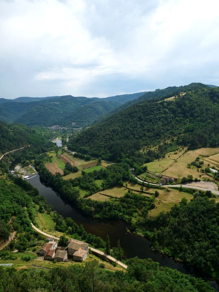 Cette plateforme haut perchée offre un magnifique panorama sur Ollières-sur-Eyrieux, une des bases touristiques principales de la vallée, et ses environs. On aperçoit aussi une autre activité très populaire, mais que nous n’avons pas testé, l’Aquarock Aventure, un parcours d’accrobranche et de via ferrata.