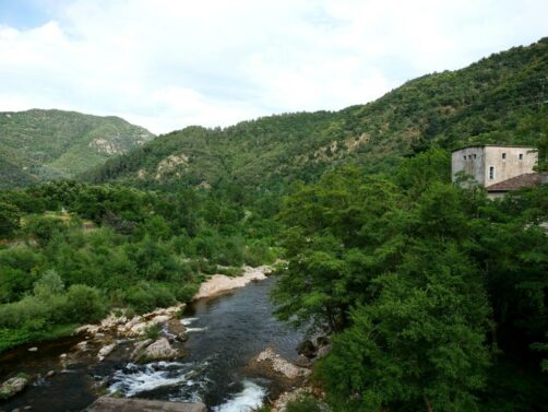 Encore plus que dans le nord de l’Ardèche, il faut ici du temps et de la patience pour découvrir les petites vallées qui, même s’il est difficile de l’imaginer aujourd’hui, formaient au 19ème et début du 20ème siècle une des régions les plus industrialisées de France. Des villages habités par quelques dizaines de personnes aujourd’hui, et qui se trouvent littéralement au milieu de nulle part, pouvaient accueillir à l’époque des milliers d’habitants, essentiellement grâce à l’industrie de la soie (et ces fameux moulinages où étaient tissés les fils de soie, le long des rivières), mais aussi grâce aux cultures en terrasse, aujourd’hui en grande partie recouvertes par la végétation.
