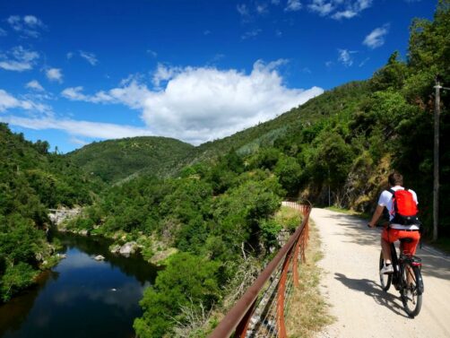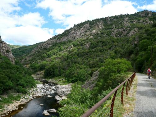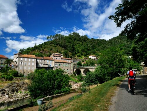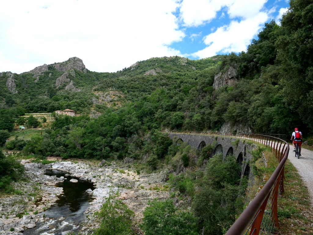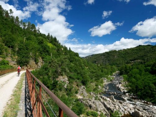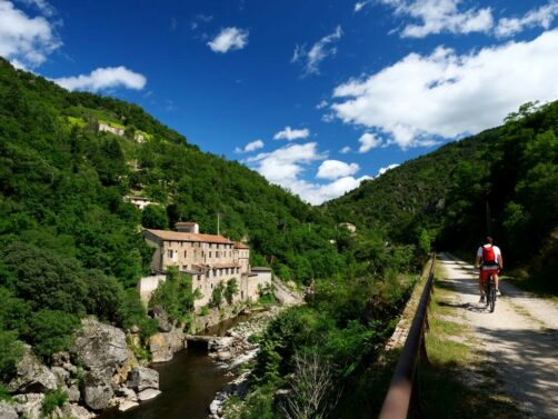 Ce tronçon permet de passer par des anciens moulinages et tissages, des vieux tunnels, des viaducs… On a vraiment envie de s’arrêter tous les 100 mètres ! Impossible de ne pas tomber amoureux de l’Ardèche face à de tels paysages et à cette douceur de vivre, en pédalant les cheveux au vent… Tellement agréable !