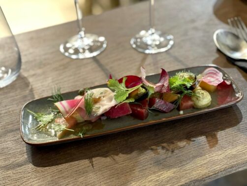 Je termine cet article en beauté avec mon restaurant coup de cœur en Ardèche, qui vaut clairement le déplacement : le Bistrot St-Anne – Maison Cornu à Vernoux-en-Vivarais (à 10 km de Chalencon). Si nous avions vite remarqué que le rapport qualité-prix dans les restaurants ardéchois était souvent excellent, nous sommes ici restés bouche bée devant un tel rapport qualité-prix, probablement le meilleur que je n’ai jamais vu pour un restaurant (en tout cas en France) !