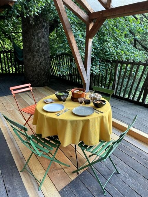 Et cerise sur le gâteau, Anne et Jérôme proposent également en option des petits-déjeuners et des repas à base de produits locaux et bio, à déguster à leur table ou sous forme de jolis paniers repas pour les séjours dans la cabane. Nous nous sommes régalés et avons fort apprécié leur sens de l’hospitalité !