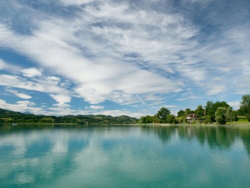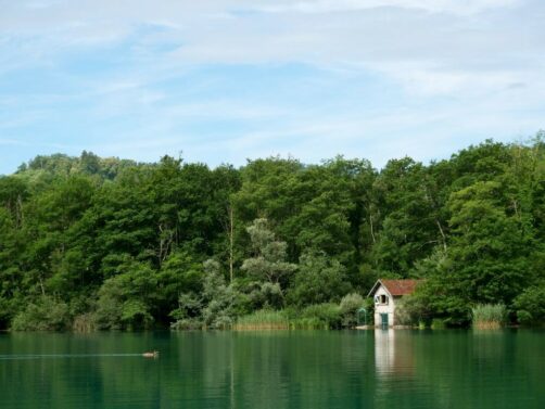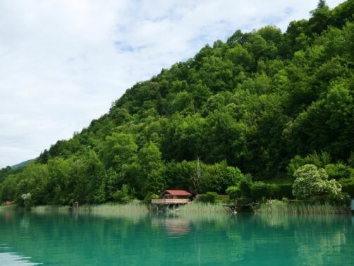 Le lac d’Aiguebelette, avec son eau d’une couleur vert émeraude intense et sa riche faune et flore, offre des paysages incroyables. C’est un peu l’oublié des 4 grands lacs de Savoie Mont Blanc, et pourtant difficile de ne pas tomber sous son charme, avec ses petites plages, ses maisons sur pilotis, ses îlots…