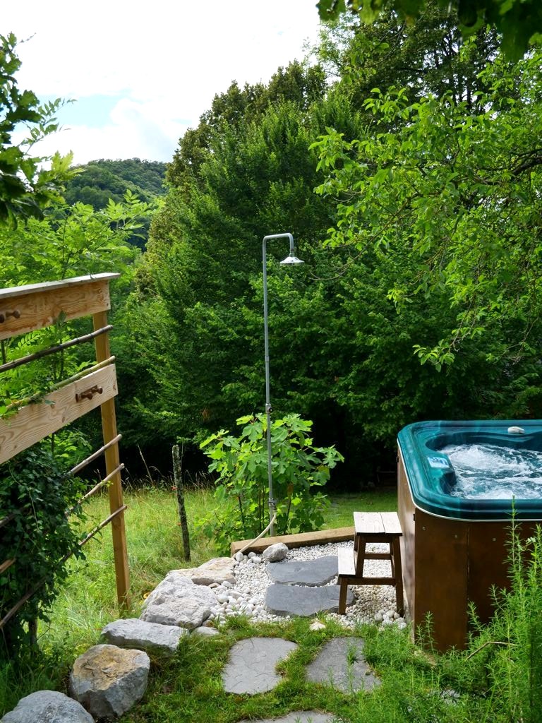 Nous avons séjourné dans une cabane isolée tout confort (lit confortable, douche et toilettes sèches) entourée d’arbres, qui possédait un grand espace extérieur avec terrasse et un très agréable jacuzzi extérieur (accompagné d’une douche) qui nous était réservé. Ce cadre bucolique m’a donné l’impression d’être en Nouvelle-Zélande !