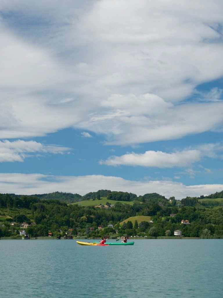 Les plages aménagées du lac sont payantes, mais en kayak ou en paddle vous pouvez facilement accéder à des petites plages (autrement pas accessibles) qui ne le sont pas ! Evidemment, vous avez également beaucoup plus de chance d’y être totalement seuls au monde, comme ce fut notre cas dans la chouette petite crique recommandée par le sympathique loueur.