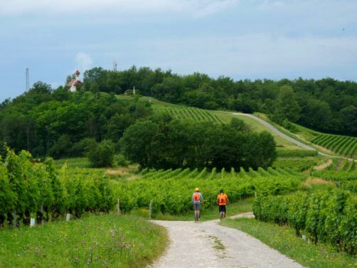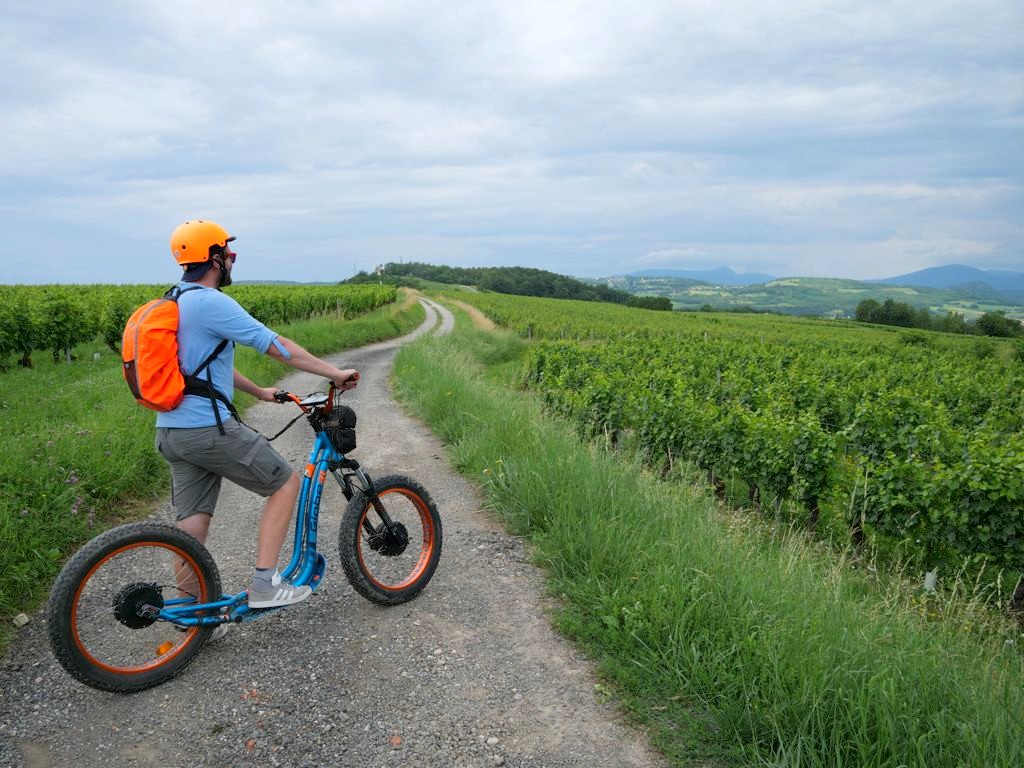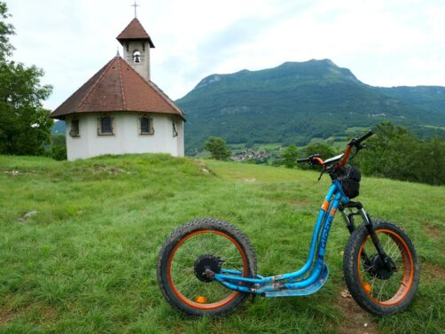 La trottinette permet de monter jusqu’à de beaux points de vue sur l’ensemble du vignoble et de la région de la Dent du Chat, comme la Chapelle Saint-Romain (à laquelle on peut aussi accéder à pied).