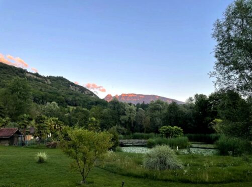 Nous avons logé à Yenne aux Nids du Chat, un hébergement écologique et kids-friendly situé dans un cadre bucolique splendide, proche d’une réserve Natura 2000. On y trouve quelques (spacieuses) cabanes design très confortables, entourées par des jardins et un étang, avec vue sur la Dent du Chat.